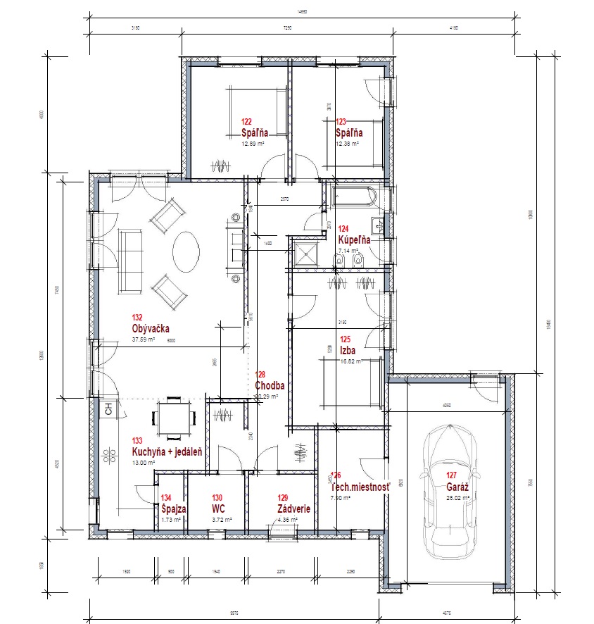 U tohoto projektu nabízíme MOŽNOST BEZPLATNÉ ZMĚNY DISPOZICE! Všechny projekty je možné dodat jako energetickou třídu A0 nebo A1. U každého projektu jsme sa snažili vymyslet tu nejlepší dispozici, jaká je vzhledem k vnějším rozměrům domu možná. I přesto je často nutné dispozici domu upravit s přihlédnutím k osazení domu na pozemek, preference klienta, nebo stavební systém. Nabízíme Vám proto možnost bezplatné změny dispozice každého našeho projektu tak, aby vyhovoval vašim potřebám. Změnou dispozice myslíme posuny nenosných příček, změnu umístění a velikosti oken, interiérových dveří a rozvodů instalací. Cena výstavby uvedená u projektu je za provedení kategorie A1 na klíč, bez interiérového vybavení a bez základů. Pro více informací a aktualizaci ceny nás prosím kontaktujte.