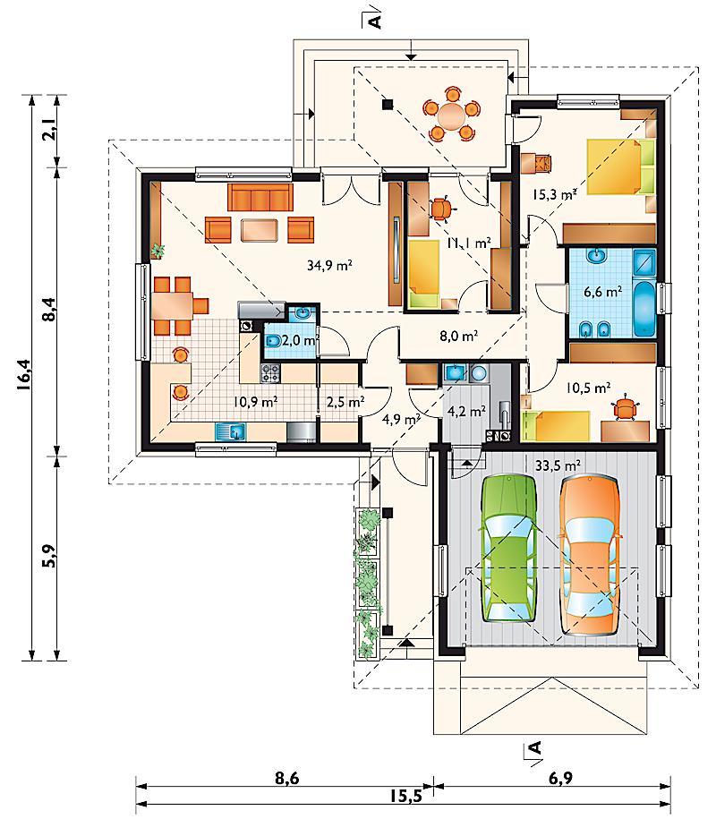U tohoto projektu nabízíme MOŽNOST BEZPLATNÉ ZMĚNY DISPOZICE! Všechny projekty je možné dodat jako energetickou třídu A0 nebo A1. U každého projektu jsme sa snažili vymyslet tu nejlepší dispozici, jaká je vzhledem k vnějším rozměrům domu možná. I přesto je často nutné dispozici domu upravit s přihlédnutím k osazení domu na pozemek, preference klienta, nebo stavební systém. Nabízíme Vám proto možnost bezplatné změny dispozice každého našeho projektu tak, aby vyhovoval vašim potřebám. Změnou dispozice myslíme posuny nenosných příček, změnu umístění a velikosti oken, interiérových dveří a rozvodů instalací. Cena výstavby uvedená u projektu je za provedení kategorie A1 na klíč, bez interiérového vybavení a bez základů. Pro více informací a aktualizaci ceny nás prosím kontaktujte.