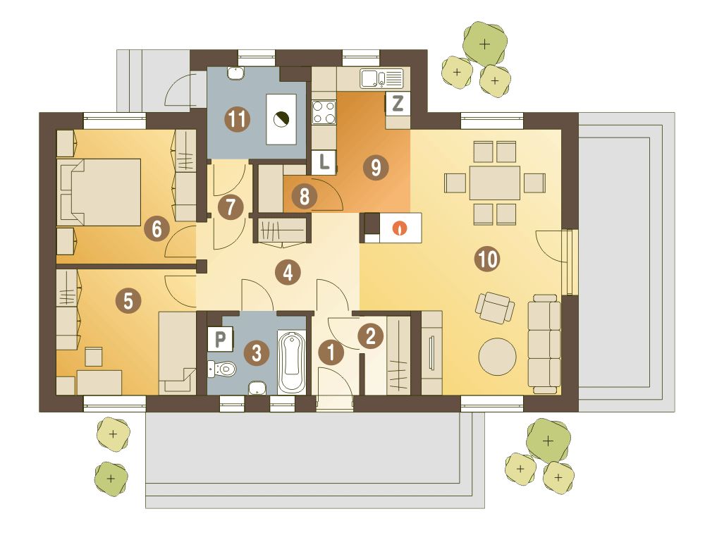 U tohoto projektu nabízíme MOŽNOST BEZPLATNÉ ZMĚNY DISPOZICE! Všechny projekty je možné dodat jako energetickou třídu A0 nebo A1. U každého projektu jsme sa snažili vymyslet tu nejlepší dispozici, jaká je vzhledem k vnějším rozměrům domu možná. I přesto je často nutné dispozici domu upravit s přihlédnutím k osazení domu na pozemek, preference klienta, nebo stavební systém. Nabízíme Vám proto možnost bezplatné změny dispozice každého našeho projektu tak, aby vyhovoval vašim potřebám. Změnou dispozice myslíme posuny nenosných příček, změnu umístění a velikosti oken, interiérových dveří a rozvodů instalací. Cena výstavby uvedená u projektu je za provedení kategorie A1 na klíč, bez interiérového vybavení a bez základů. Pro více informací a aktualizaci ceny nás prosím kontaktujte.