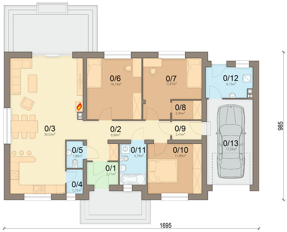 U tohoto projektu nabízíme MOŽNOST BEZPLATNÉ ZMĚNY DISPOZICE! Všechny projekty je možné dodat jako energetickou třídu A0 nebo A1. U každého projektu jsme sa snažili vymyslet tu nejlepší dispozici, jaká je vzhledem k vnějším rozměrům domu možná. I přesto je často nutné dispozici domu upravit s přihlédnutím k osazení domu na pozemek, preference klienta, nebo stavební systém. Nabízíme Vám proto možnost bezplatné změny dispozice každého našeho projektu tak, aby vyhovoval vašim potřebám. Změnou dispozice myslíme posuny nenosných příček, změnu umístění a velikosti oken, interiérových dveří a rozvodů instalací. Cena výstavby uvedená u projektu je za provedení kategorie A1 na klíč, bez interiérového vybavení a bez základů. Pro více informací a aktualizaci ceny nás prosím kontaktujte.