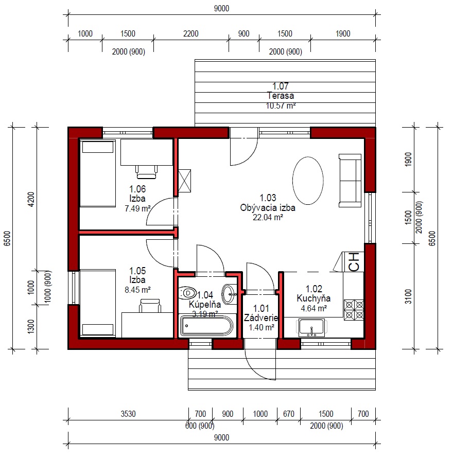 U tohoto projektu nabízíme MOŽNOST BEZPLATNÉ ZMĚNY DISPOZICE! Všechny projekty je možné dodat jako energetickou třídu A0 nebo A1. U každého projektu jsme sa snažili vymyslet tu nejlepší dispozici, jaká je vzhledem k vnějším rozměrům domu možná. I přesto je často nutné dispozici domu upravit s přihlédnutím k osazení domu na pozemek, preference klienta, nebo stavební systém. Nabízíme Vám proto možnost bezplatné změny dispozice každého našeho projektu tak, aby vyhovoval vašim potřebám. Změnou dispozice myslíme posuny nenosných příček, změnu umístění a velikosti oken, interiérových dveří a rozvodů instalací. Cena výstavby uvedená u projektu je za provedení kategorie A1 na klíč, bez interiérového vybavení a bez základů. Pro více informací a aktualizaci ceny nás prosím kontaktujte.