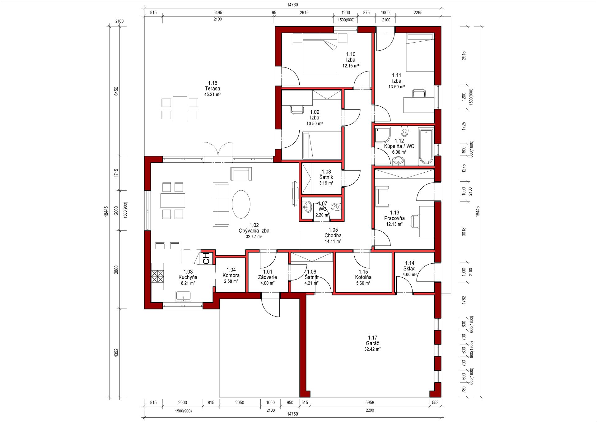 U tohoto projektu nabízíme MOŽNOST BEZPLATNÉ ZMĚNY DISPOZICE! Všechny projekty je možné dodat jako energetickou třídu A0 nebo A1. U každého projektu jsme sa snažili vymyslet tu nejlepší dispozici, jaká je vzhledem k vnějším rozměrům domu možná. I přesto je často nutné dispozici domu upravit s přihlédnutím k osazení domu na pozemek, preference klienta, nebo stavební systém. Nabízíme Vám proto možnost bezplatné změny dispozice každého našeho projektu tak, aby vyhovoval vašim potřebám. Změnou dispozice myslíme posuny nenosných příček, změnu umístění a velikosti oken, interiérových dveří a rozvodů instalací. Cena výstavby uvedená u projektu je za provedení kategorie A1 na klíč, bez interiérového vybavení a bez základů. Pro více informací a aktualizaci ceny nás prosím kontaktujte.