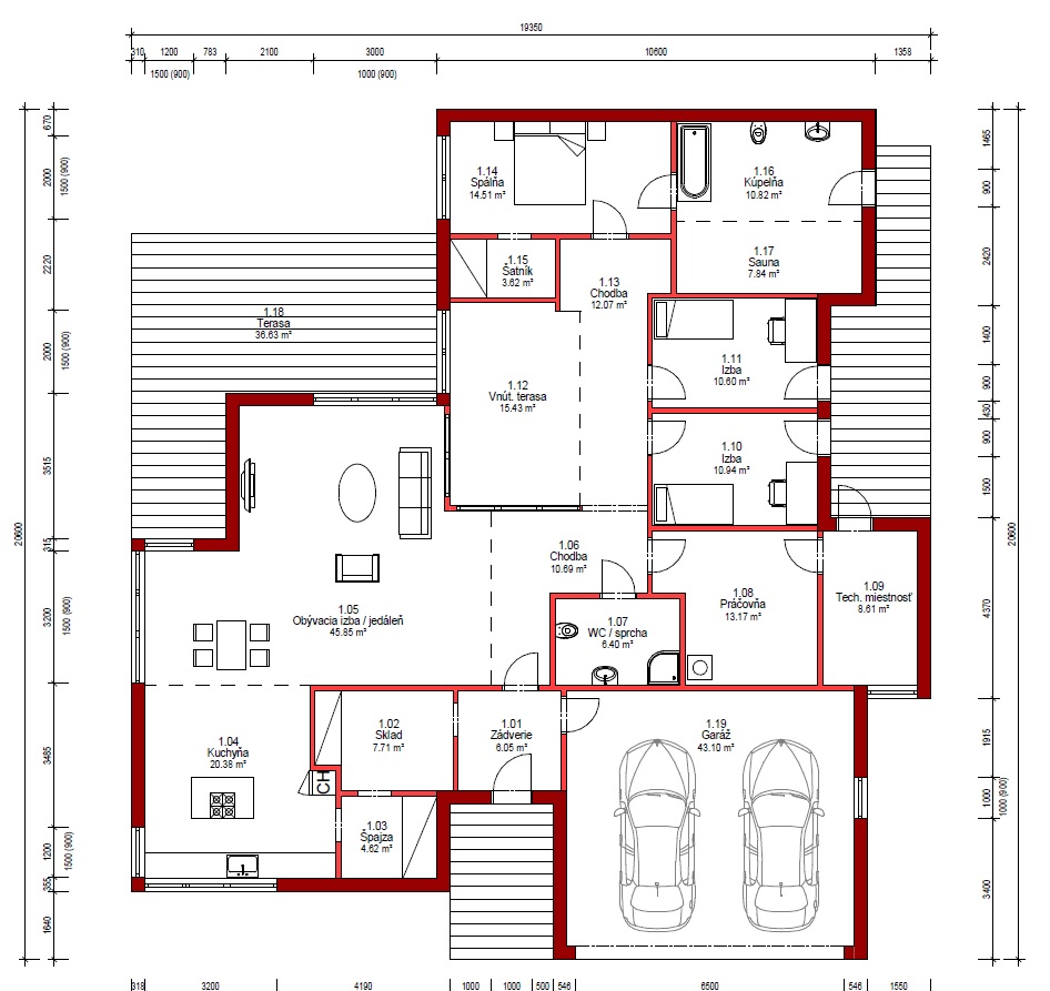 U tohoto projektu nabízíme MOŽNOST BEZPLATNÉ ZMĚNY DISPOZICE! Všechny projekty je možné dodat jako energetickou třídu A0 nebo A1. U každého projektu jsme sa snažili vymyslet tu nejlepší dispozici, jaká je vzhledem k vnějším rozměrům domu možná. I přesto je často nutné dispozici domu upravit s přihlédnutím k osazení domu na pozemek, preference klienta, nebo stavební systém. Nabízíme Vám proto možnost bezplatné změny dispozice každého našeho projektu tak, aby vyhovoval vašim potřebám. Změnou dispozice myslíme posuny nenosných příček, změnu umístění a velikosti oken, interiérových dveří a rozvodů instalací. Cena výstavby uvedená u projektu je za provedení kategorie A1 na klíč, bez interiérového vybavení a bez základů. Pro více informací a aktualizaci ceny nás prosím kontaktujte.