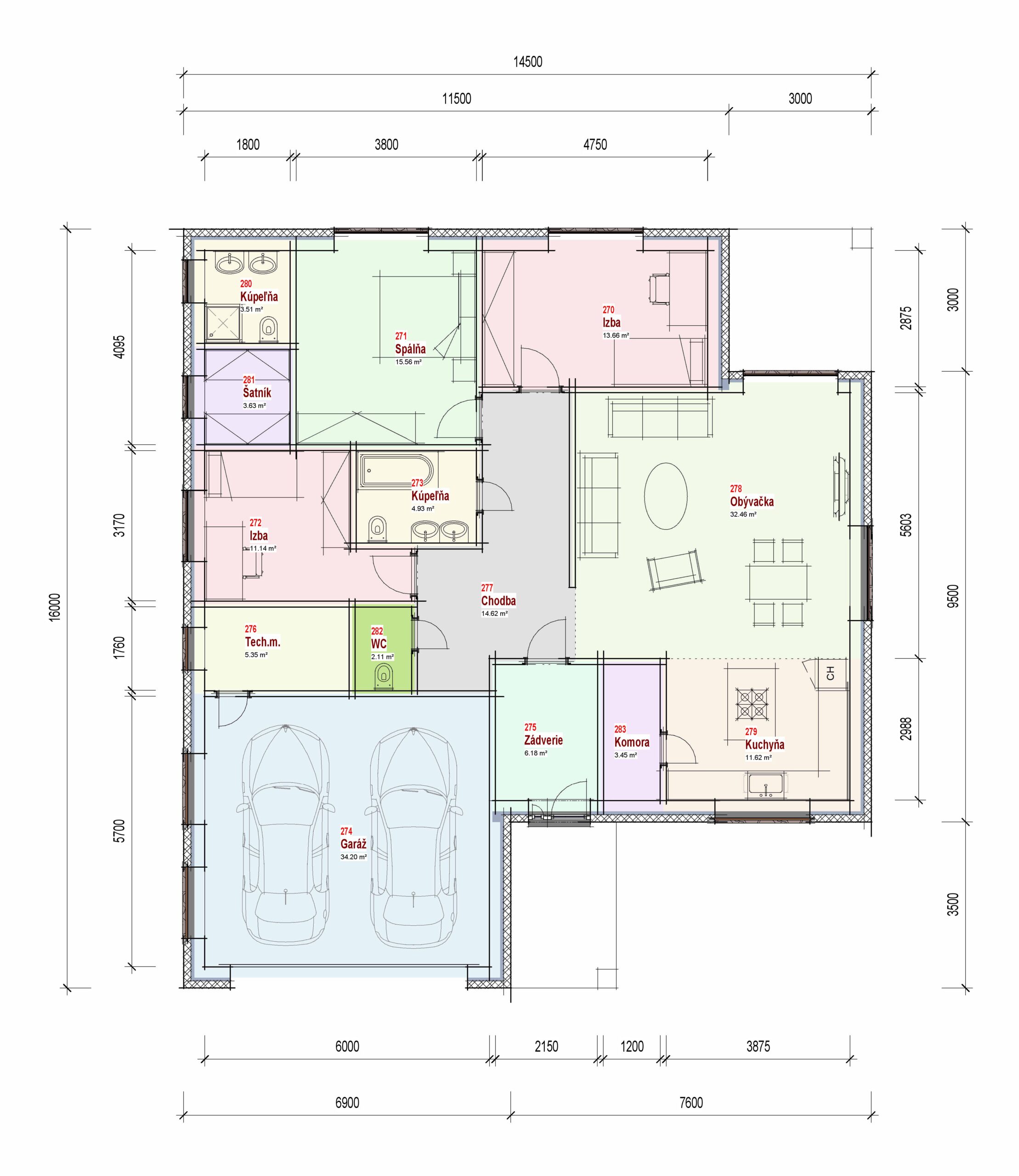 U tohoto projektu nabízíme MOŽNOST BEZPLATNÉ ZMĚNY DISPOZICE! Všechny projekty je možné dodat jako energetickou třídu A0 nebo A1. U každého projektu jsme sa snažili vymyslet tu nejlepší dispozici, jaká je vzhledem k vnějším rozměrům domu možná. I přesto je často nutné dispozici domu upravit s přihlédnutím k osazení domu na pozemek, preference klienta, nebo stavební systém. Nabízíme Vám proto možnost bezplatné změny dispozice každého našeho projektu tak, aby vyhovoval vašim potřebám. Změnou dispozice myslíme posuny nenosných příček, změnu umístění a velikosti oken, interiérových dveří a rozvodů instalací. Cena výstavby uvedená u projektu je za provedení kategorie A1 na klíč, bez interiérového vybavení a bez základů. Pro více informací a aktualizaci ceny nás prosím kontaktujte.