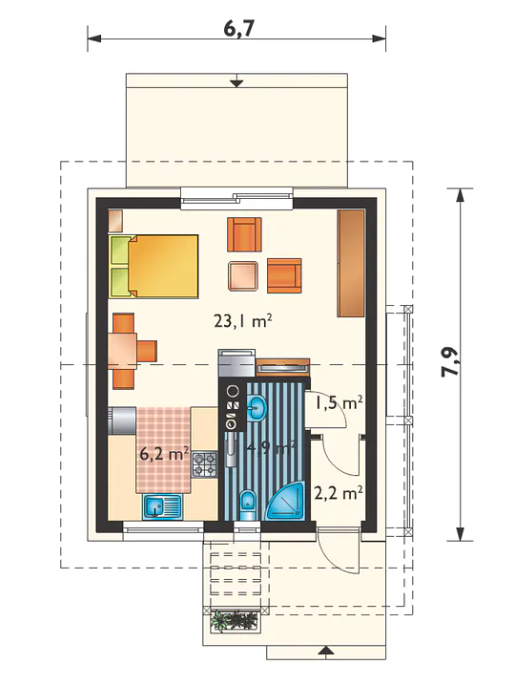 U tohoto projektu nabízíme MOŽNOST BEZPLATNÉ ZMĚNY DISPOZICE! Všechny projekty je možné dodat jako energetickou třídu A0 nebo A1. U každého projektu jsme sa snažili vymyslet tu nejlepší dispozici, jaká je vzhledem k vnějším rozměrům domu možná. I přesto je často nutné dispozici domu upravit s přihlédnutím k osazení domu na pozemek, preference klienta, nebo stavební systém. Nabízíme Vám proto možnost bezplatné změny dispozice každého našeho projektu tak, aby vyhovoval vašim potřebám. Změnou dispozice myslíme posuny nenosných příček, změnu umístění a velikosti oken, interiérových dveří a rozvodů instalací. Cena výstavby uvedená u projektu je za provedení kategorie A1 na klíč, bez interiérového vybavení a bez základů. Pro více informací a aktualizaci ceny nás prosím kontaktujte.