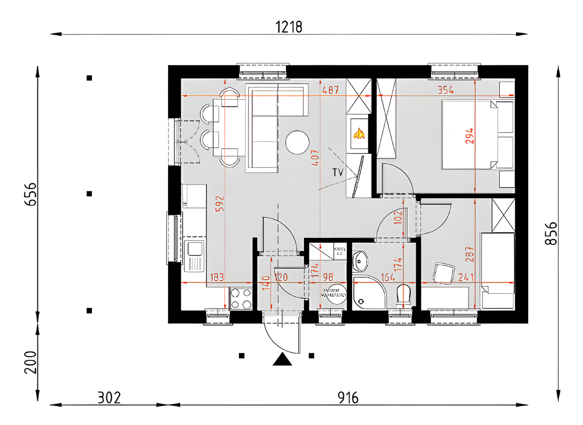 U tohoto projektu nabízíme MOŽNOST BEZPLATNÉ ZMĚNY DISPOZICE! Všechny projekty je možné dodat jako energetickou třídu A0 nebo A1. U každého projektu jsme sa snažili vymyslet tu nejlepší dispozici, jaká je vzhledem k vnějším rozměrům domu možná. I přesto je často nutné dispozici domu upravit s přihlédnutím k osazení domu na pozemek, preference klienta, nebo stavební systém. Nabízíme Vám proto možnost bezplatné změny dispozice každého našeho projektu tak, aby vyhovoval vašim potřebám. Změnou dispozice myslíme posuny nenosných příček, změnu umístění a velikosti oken, interiérových dveří a rozvodů instalací. Cena výstavby uvedená u projektu je za provedení kategorie A1 na klíč, bez interiérového vybavení a bez základů. Pro více informací a aktualizaci ceny nás prosím kontaktujte.