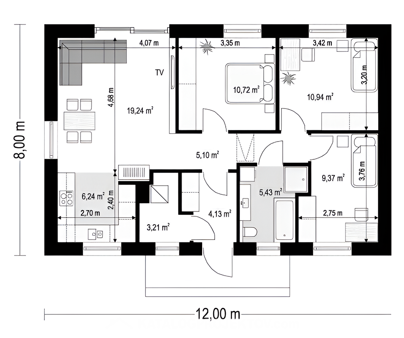 U tohoto projektu nabízíme MOŽNOST BEZPLATNÉ ZMĚNY DISPOZICE! Všechny projekty je možné dodat jako energetickou třídu A0 nebo A1. U každého projektu jsme sa snažili vymyslet tu nejlepší dispozici, jaká je vzhledem k vnějším rozměrům domu možná. I přesto je často nutné dispozici domu upravit s přihlédnutím k osazení domu na pozemek, preference klienta, nebo stavební systém. Nabízíme Vám proto možnost bezplatné změny dispozice každého našeho projektu tak, aby vyhovoval vašim potřebám. Změnou dispozice myslíme posuny nenosných příček, změnu umístění a velikosti oken, interiérových dveří a rozvodů instalací. Cena výstavby uvedená u projektu je za provedení kategorie A1 na klíč, bez interiérového vybavení a bez základů. Pro více informací a aktualizaci ceny nás prosím kontaktujte.