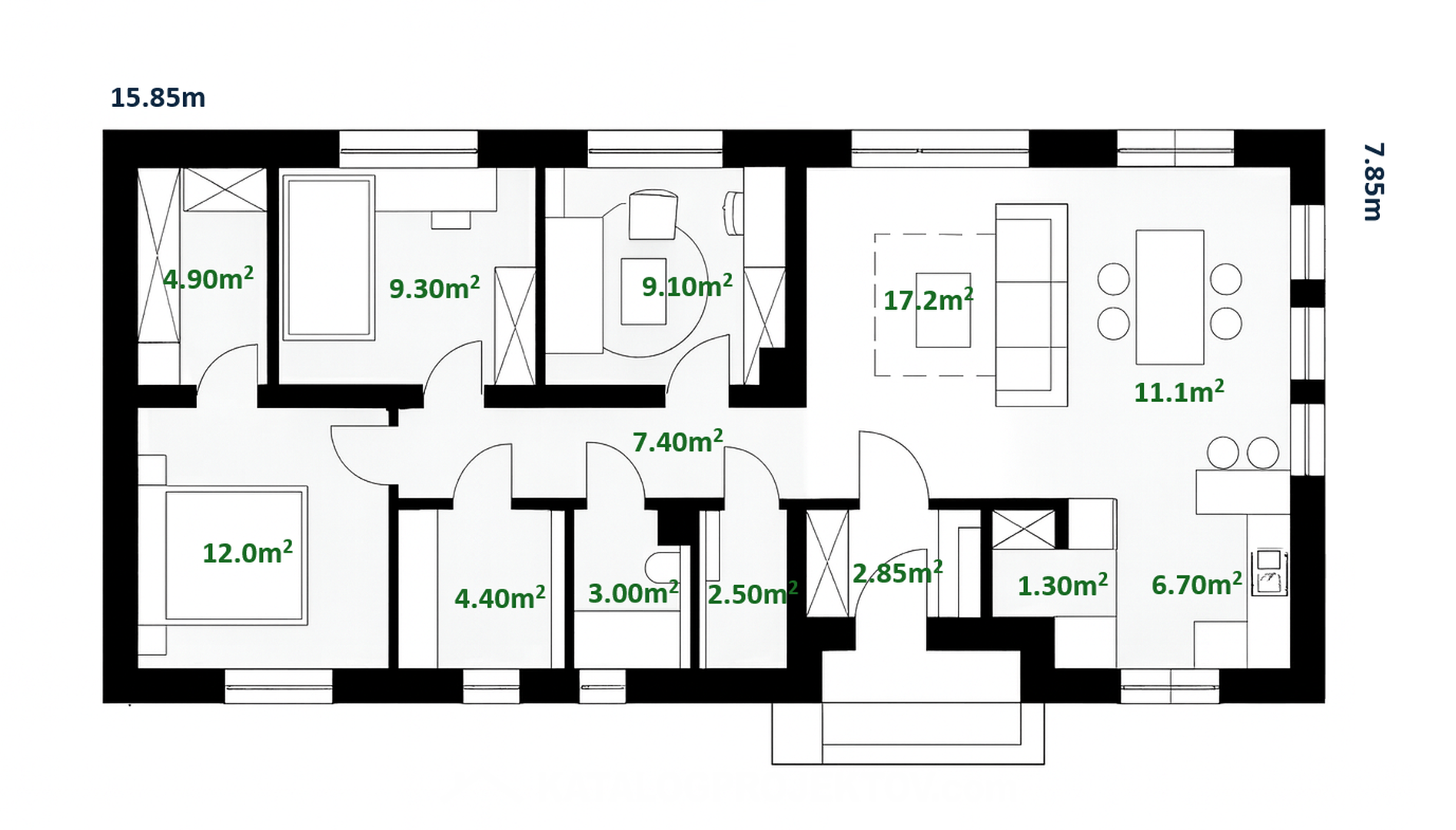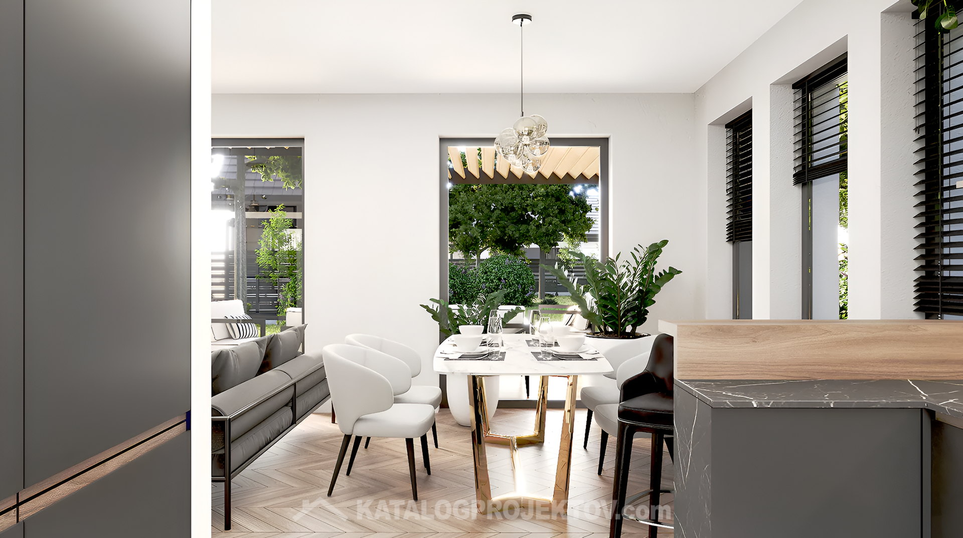 U tohoto projektu nabízíme MOŽNOST BEZPLATNÉ ZMĚNY DISPOZICE! Všechny projekty je možné dodat jako energetickou třídu A0 nebo A1. U každého projektu jsme sa snažili vymyslet tu nejlepší dispozici, jaká je vzhledem k vnějším rozměrům domu možná. I přesto je často nutné dispozici domu upravit s přihlédnutím k osazení domu na pozemek, preference klienta, nebo stavební systém. Nabízíme Vám proto možnost bezplatné změny dispozice každého našeho projektu tak, aby vyhovoval vašim potřebám. Změnou dispozice myslíme posuny nenosných příček, změnu umístění a velikosti oken, interiérových dveří a rozvodů instalací. Cena výstavby uvedená u projektu je za provedení kategorie A1 na klíč, bez interiérového vybavení a bez základů. Pro více informací a aktualizaci ceny nás prosím kontaktujte.