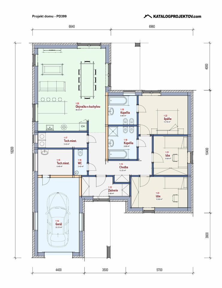 U tohoto projektu nabízíme MOŽNOST BEZPLATNÉ ZMĚNY DISPOZICE! Všechny projekty je možné dodat jako energetickou třídu A0 nebo A1. U každého projektu jsme sa snažili vymyslet tu nejlepší dispozici, jaká je vzhledem k vnějším rozměrům domu možná. I přesto je často nutné dispozici domu upravit s přihlédnutím k osazení domu na pozemek, preference klienta, nebo stavební systém. Nabízíme Vám proto možnost bezplatné změny dispozice každého našeho projektu tak, aby vyhovoval vašim potřebám. Změnou dispozice myslíme posuny nenosných příček, změnu umístění a velikosti oken, interiérových dveří a rozvodů instalací. Cena výstavby uvedená u projektu je za provedení kategorie A1 na klíč, bez interiérového vybavení a bez základů. Pro více informací a aktualizaci ceny nás prosím kontaktujte.