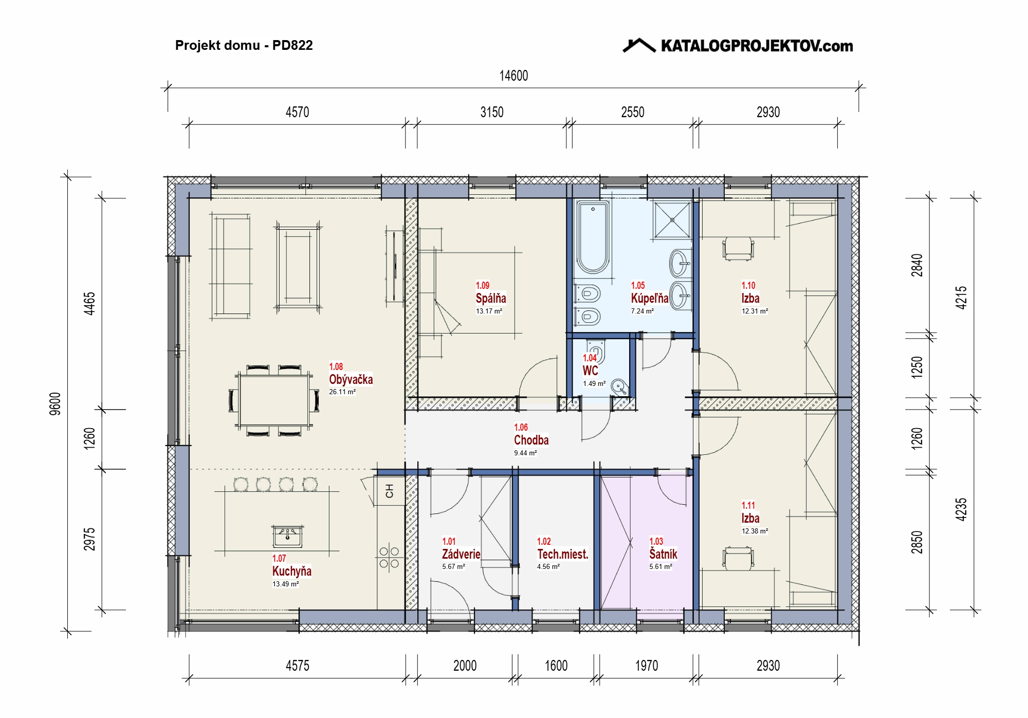 U tohoto projektu nabízíme MOŽNOST BEZPLATNÉ ZMĚNY DISPOZICE! Všechny projekty je možné dodat jako energetickou třídu A0 nebo A1. U každého projektu jsme sa snažili vymyslet tu nejlepší dispozici, jaká je vzhledem k vnějším rozměrům domu možná. I přesto je často nutné dispozici domu upravit s přihlédnutím k osazení domu na pozemek, preference klienta, nebo stavební systém. Nabízíme Vám proto možnost bezplatné změny dispozice každého našeho projektu tak, aby vyhovoval vašim potřebám. Změnou dispozice myslíme posuny nenosných příček, změnu umístění a velikosti oken, interiérových dveří a rozvodů instalací. Cena výstavby uvedená u projektu je za provedení kategorie A1 na klíč, bez interiérového vybavení a bez základů. Pro více informací a aktualizaci ceny nás prosím kontaktujte.