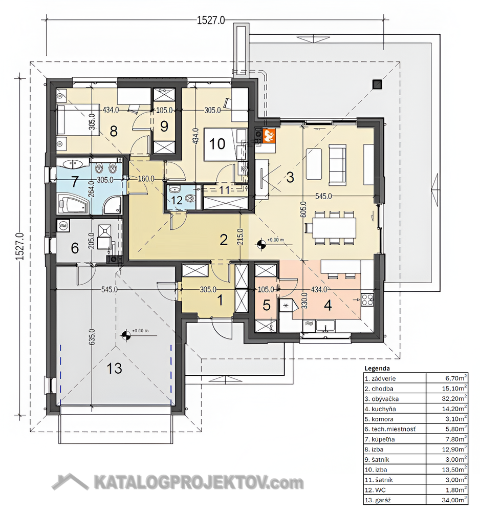 U tohoto projektu nabízíme MOŽNOST BEZPLATNÉ ZMĚNY DISPOZICE! Všechny projekty je možné dodat jako energetickou třídu A0 nebo A1. U každého projektu jsme sa snažili vymyslet tu nejlepší dispozici, jaká je vzhledem k vnějším rozměrům domu možná. I přesto je často nutné dispozici domu upravit s přihlédnutím k osazení domu na pozemek, preference klienta, nebo stavební systém. Nabízíme Vám proto možnost bezplatné změny dispozice každého našeho projektu tak, aby vyhovoval vašim potřebám. Změnou dispozice myslíme posuny nenosných příček, změnu umístění a velikosti oken, interiérových dveří a rozvodů instalací. Cena výstavby uvedená u projektu je za provedení kategorie A1 na klíč, bez interiérového vybavení a bez základů. Pro více informací a aktualizaci ceny nás prosím kontaktujte.